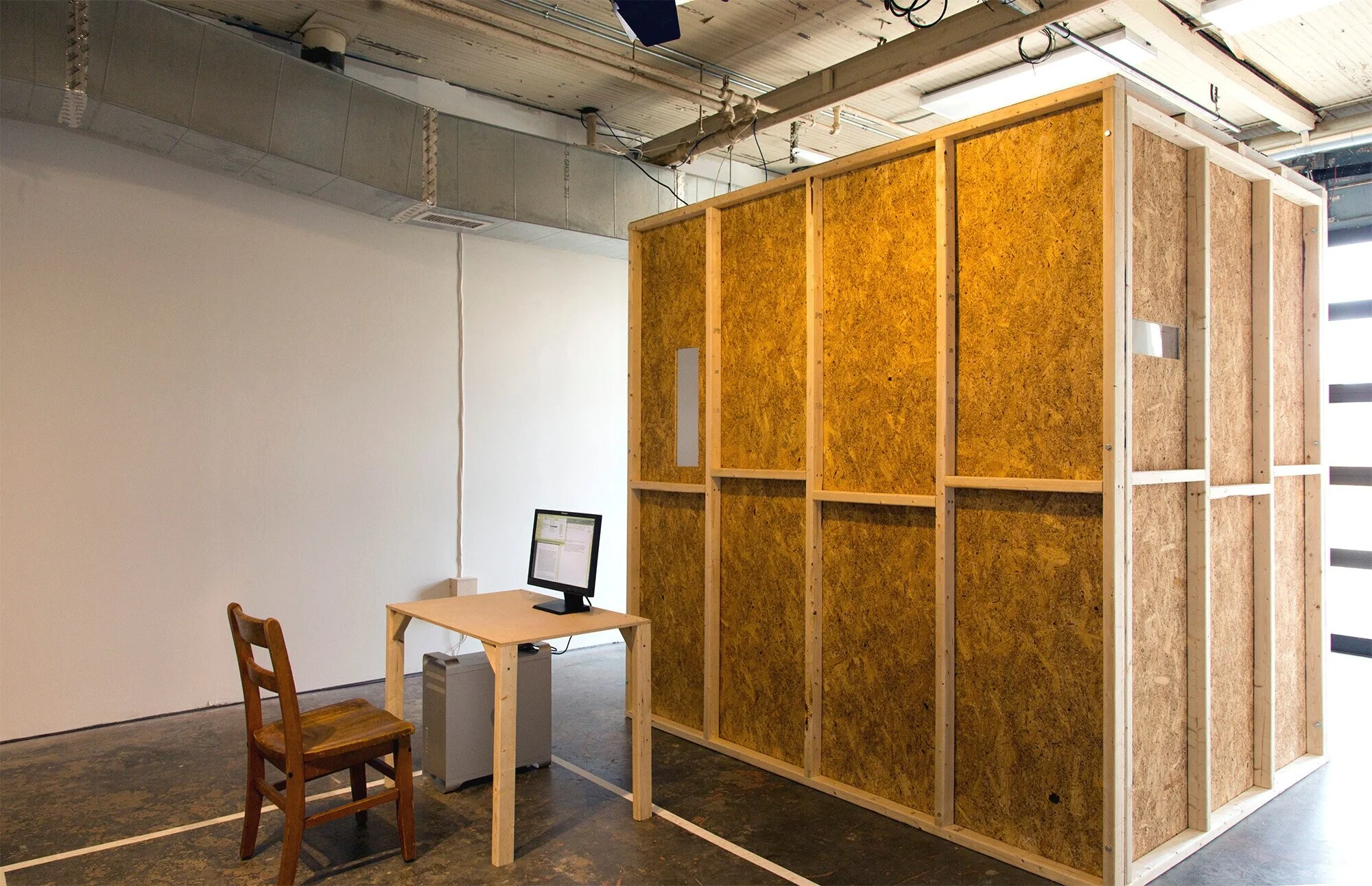 Beginning as an institutional critique of the written thesis as a component of my MFA degree, this project came to encompass a performative intervention probing notions of viewer expectation, the reliability of the artist as narrator, and the scope as well as problematic nature of empathy elicited through experiential encounters with art. I constructed and enclosed myself within a tiny modular living space for four days on the premises of the Greensboro Project Space. While viewers could not see me directly, they could view a monitor which mirrored the activities I performed on my own tablet within the box. During this four-day duration, I researched and composed my final MFA Thesis. This work also addressed physical and psychological challenges associated with duration and isolation. With this project, I worked to respond to the notion of artistic risk and to push the degree to which viewers willingly might assign value to conceptual transactions I authored.